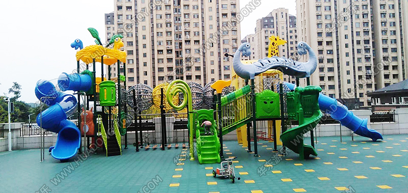 該幼兒園項目采用的是華東游樂自主研發(fā)的動物世界系列大型滑梯組合,該滑梯以可愛的小動物為設計模型,讓小朋友可以和諧的與小動物相處,教育他們能夠保護小動物,愛護小動物。