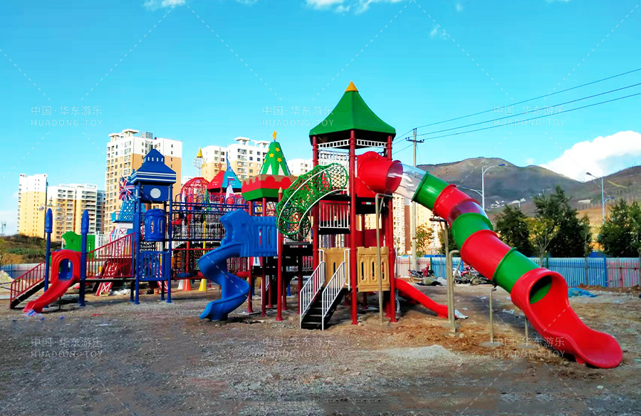 該游樂園選用的是華東游樂自主生產(chǎn)和研發(fā)的跨國系列大型組合滑梯,該滑梯具有爬網(wǎng)、攀爬墻、旋轉滑梯、空中爬網(wǎng)、U型網(wǎng)橋、平衡吊環(huán)等功能,是一款風格多樣、功能齊全的游樂設備,深受小朋友們的喜愛。