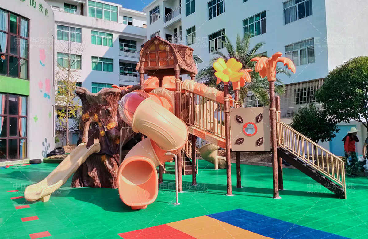 江西省上饒市臨湖中心幼兒園是一個專業(yè)的學(xué)前幼兒教育學(xué)校,此次選用的是華東游樂自主研發(fā)和設(shè)計(jì)的具有滑梯、鉆洞、攀爬等功能為一體的遠(yuǎn)古部落系列的組合滑梯,該滑梯具有功能齊全、顏色艷麗、主題性強(qiáng)、使用壽命長等特點(diǎn),深受小朋友們的喜愛。