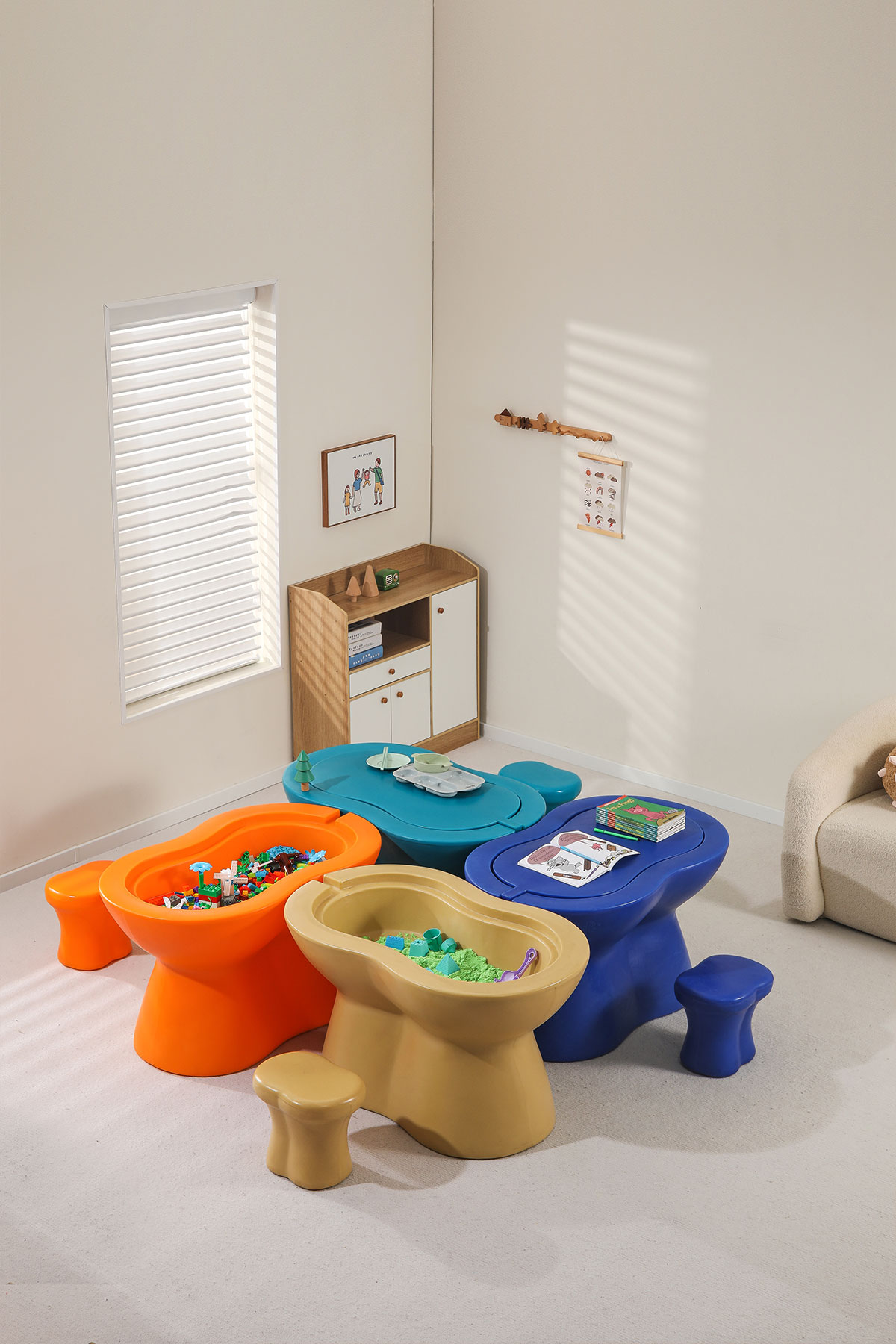 這款兒童游戲桌的設(shè)計(jì)理念就是“多功能一體化”。不僅是孩子們做作業(yè)、學(xué)習(xí)的好幫手,更是他們娛樂(lè)、游戲的最佳伙伴。桌子可以根據(jù)需要輕松轉(zhuǎn)換功能,實(shí)用性和趣味性并重。