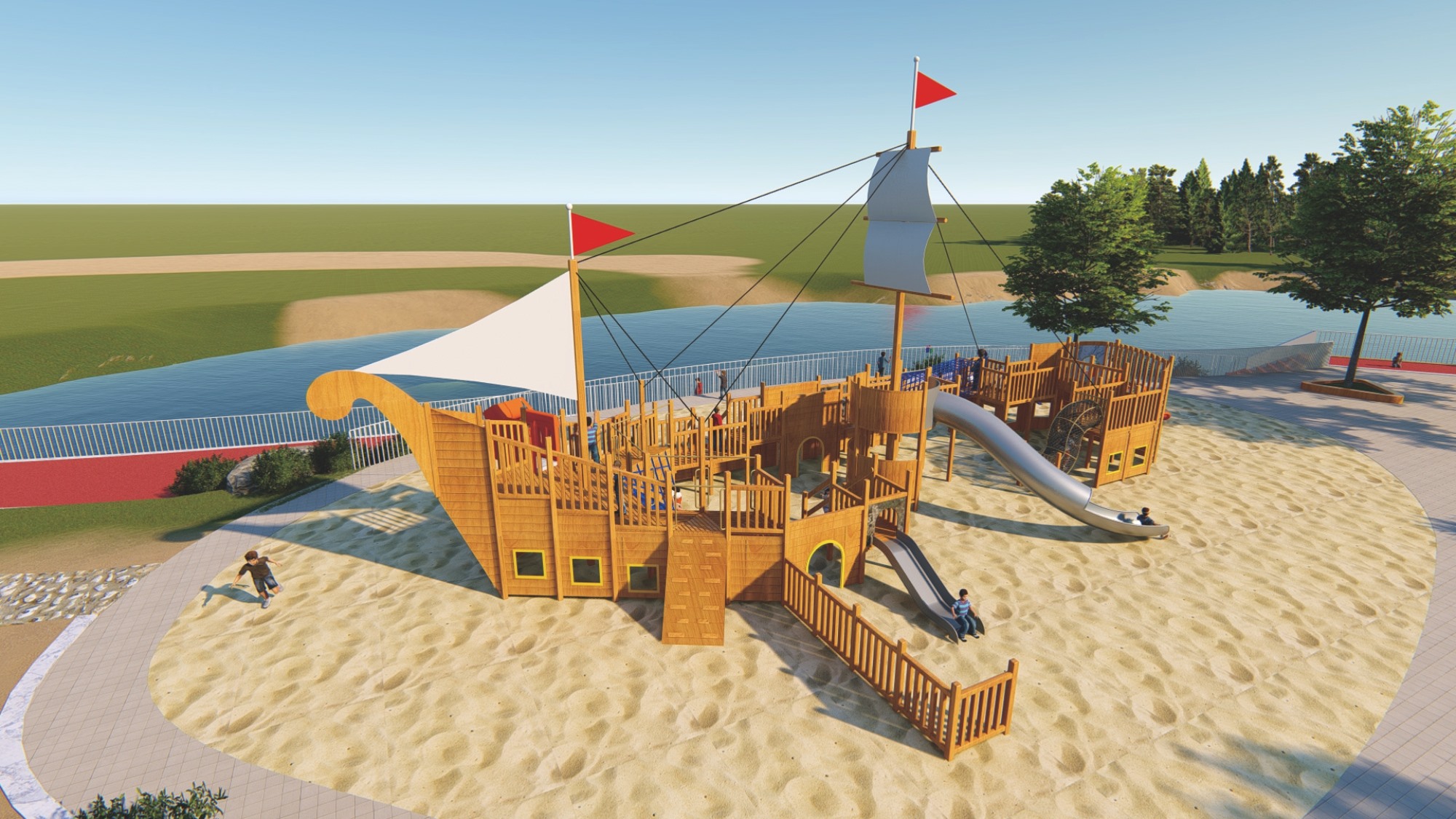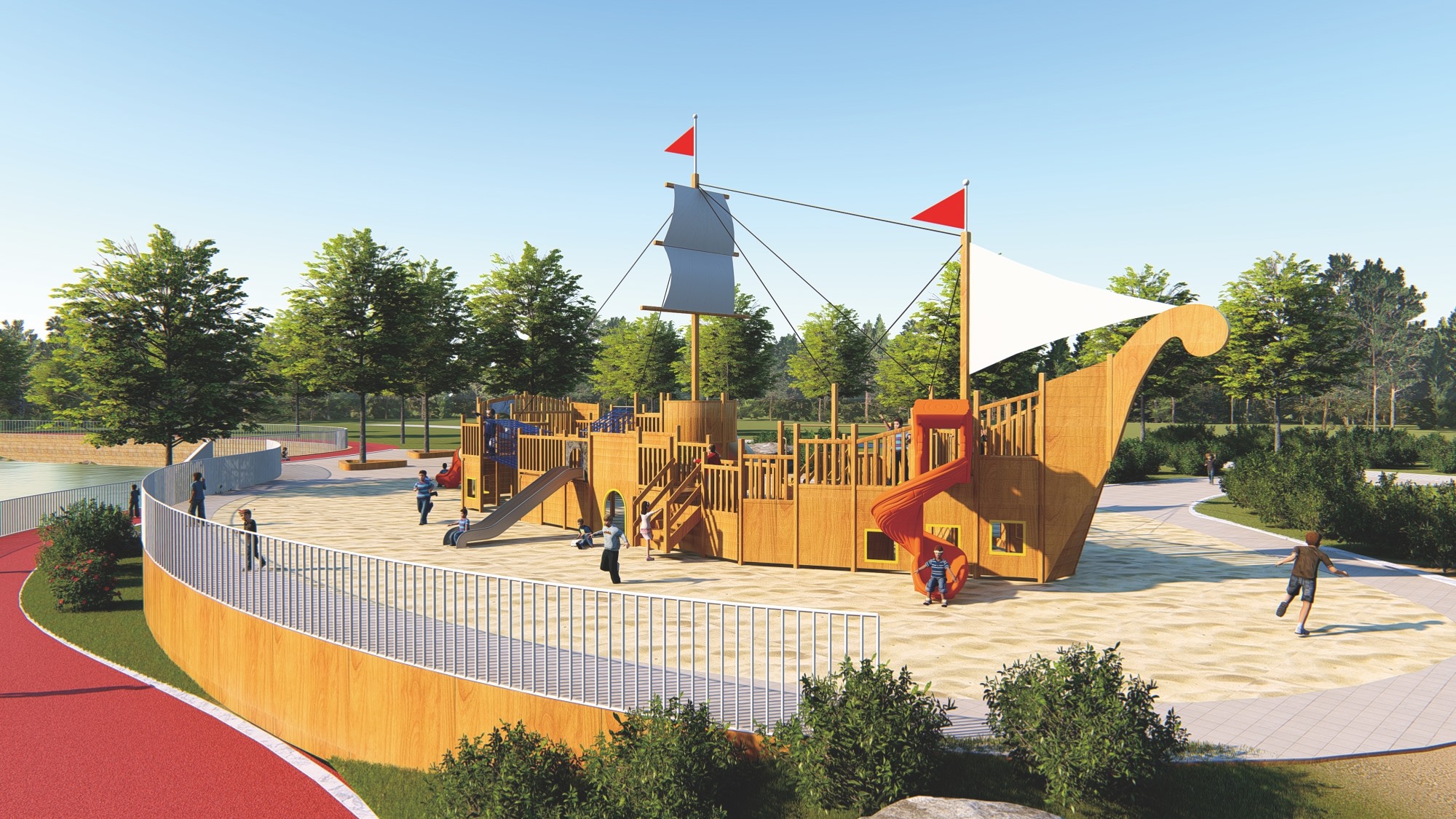 • 木質(zhì)海盜船組合滑梯的設(shè)計(jì)以大自然為主題,融合了船體、桅桿、甲板等元素,外觀新穎、結(jié)構(gòu)牢固。它集攀爬、滑梯、秋千等功能于一體,旨在鍛煉孩子的平衡協(xié)調(diào)能力和自我保護(hù)意識(shí),同時(shí)培養(yǎng)探險(xiǎn)精神。