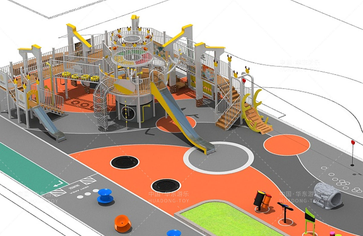 安裝階段,麋鹿樂園項(xiàng)目團(tuán)隊(duì)更是精益求精,每一個(gè)螺絲的緊固、每一塊板材的拼接都力求完美。華東游樂的設(shè)計(jì)師為了確保游樂設(shè)施的穩(wěn)定性和耐用性,專業(yè)安裝團(tuán)隊(duì)在現(xiàn)場(chǎng)進(jìn)行了多次模擬測(cè)試,不斷調(diào)整優(yōu)化,直至達(dá)到最佳狀態(tài)。兒童搖搖樂與打擊樂器區(qū)的地面鋪設(shè)了高彈性、防滑的環(huán)保地墊,有效緩沖跌倒時(shí)的沖擊力,保護(hù)孩子們免受傷害。攀爬網(wǎng)和旋轉(zhuǎn)椅子的安裝更是嚴(yán)格遵循國(guó)際安全標(biāo)準(zhǔn),確保每一處連接都牢固可靠,為孩子們營(yíng)造一個(gè)既刺激又安心的游樂環(huán)境。