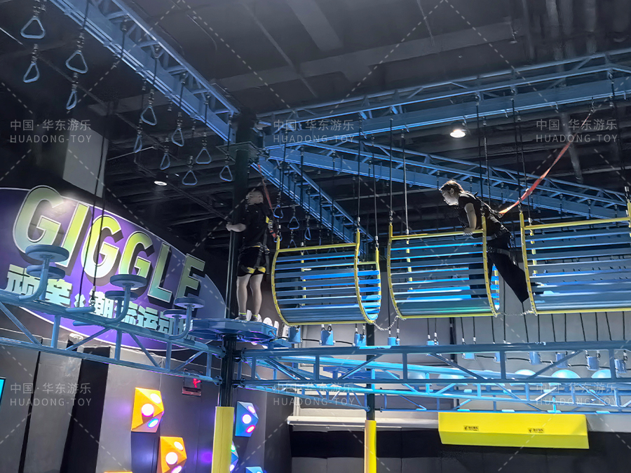 高空拓展區(qū)使用航空級鋁合金支架與雙安全繩設(shè)計,通過歐盟EN1176安全認證。